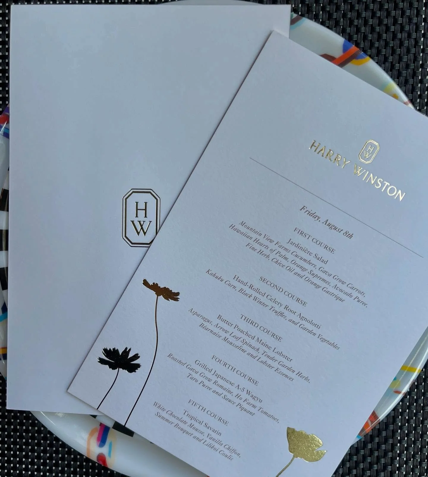 View fullsize Menus as timeless as the jewels ✨ We created these sleek, elegant menus for Harry Winston, designed to complement every sparkling moment #MadeBySPAR