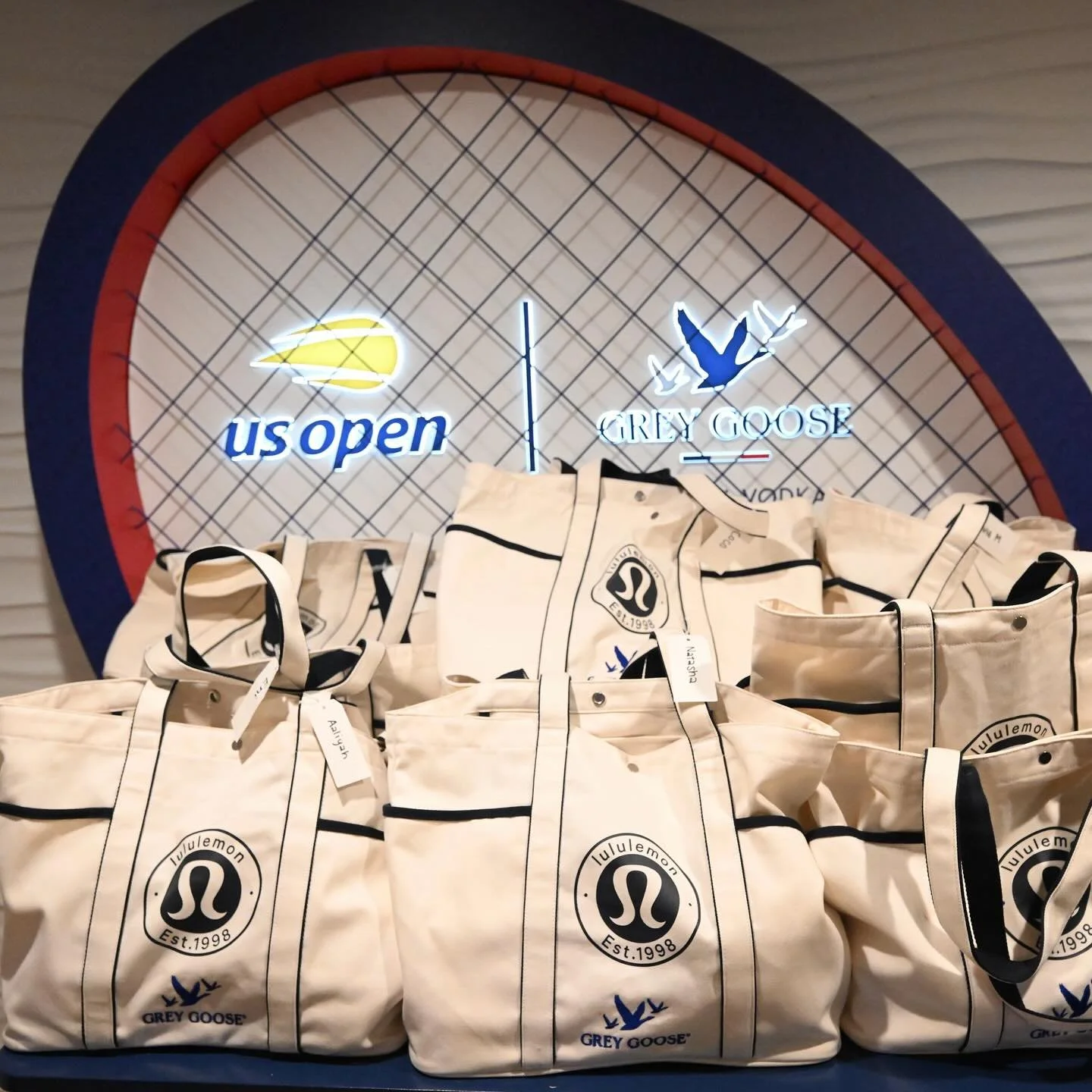 View fullsize US Open wrapped, but our custom Grey Goose embroidered totes + etched water bottles take the win💙 #MadeBySPAR